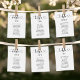Moderne Schwarz-Weiß-Hochzeitskarten (Farbmodifikation) mit schwarzem Typografie-Design mit schick kalligraphischer Schrift und Herzakzent. Der einfache und elegante, benutzerdefinierte Text, der mit der Tischnummer und den Namen der Gäste personalisiert werden kann, die an diesem bestimmten Tisch sitzen. Passen Sie Ihre individuelle Tischnummer (1, 2, 3... usw.) an und fügen Sie sie Ihrem Warenkorb hinzu.