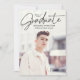 Mit dieser modernen und minimalistischen Graduiertenparty verkünden Sie Ihren Abschluss stilvoll. Dieses Design besticht durch sein senkretisches Senior-Foto und betont "Graduate" in einem eleganten, handgeschriebenen, schwarzen Drehbuch, das in der Nähe der Spitze positioniert ist. Personalisieren Sie die Front mit Ihrem Namen, Schule und Abschluss Jahr für eine maßgeschneiderte Touch. Die Rückseite zeigt ein horizontales Foto mit den Details Ihrer Graduierungsparty. Diese schicke und zeitlose Einladung, die perfekt für Absolventen der Gymnasium und Uni ist, Set den Ton für eine unvergessliche Feier.