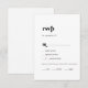 Diese moderne schwarze Typografie-Menü Wahl RSVP Karte ist perfekt für eine einfache Hochzeit. Das minimalistisch-schwarz-weiße Design besticht durch einen Retro-zeitgenössischen Schriftart mit einem einzigartigen böhmischen Ambiente. Ideal für jede Jahreszeit. Behalt es minimal, wie es ist, oder fügen Sie Ihre eigenen Grafiken und Kunstwerke. Diese Hochzeitskarte frage den Gästen bequem, was sie am Empfang essen möchten.