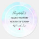 Firmenzeichen mit Kerzen oder Seife mit modernem abstraktem Aquarelldesign. Blau und lila vermischen sich und vermischen sich in einem abstrakten Muster in sanften Pastellfarben. Ein wenig mickrig, träumt dieses Design. Künstlerisch, stilvoll und schön.