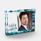 Moderner Blue Abstrakt Graduate Class of Abschluss Year Foto Block perfekt für alle Eltern oder Großeltern des Absolventen. Klassisches, elegantes und modernes Design. Passen Sie mit einem Foto des Absolventen und anderen Ihre Feierlichkeiten Details an.