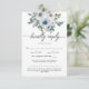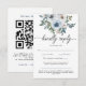 Moderne Blue Floral QR Code Wedding RSVP Card Karte