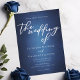 Schöne, dunkelblaue Farbtöne schaffen eine Textur wie Wasser auf diesem Abend Hochzeitseinladung. Perfekt am See oder am Wasser lädt zu einer Zeremonie am See mit Blick auf das Wasser ein. Elegantes, weißes, minimalistisches Skript mit Ihren Details über einen Verlauf, der sich anfühlt, als ob Sie unter Wasser schwimmen.