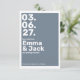 Mit dieser modernen und stilvollen Save the Date-Karte können Sie Ihren besonderen Tag mit der beeindruckenden, senkrechten, weißen Dattelanzeige auf einem eleganten, blau-weiß gestalteten Hintergrund feiern. Das saubere, minimalistische Layout besticht durch zeitgenössische, trendige, weiße Blocktypografie, die sich durch ein knuspriges und unvergessliches Aussehen auszeichnet, das sich perfekt für die heutigen Hochzeiten eignet. Geräumige Formatierung und scharfe Linien behielt das Design frisch und puristisch, während die Palette eine Touch raffinierter Eleganz verleiht. Ideal für Paare, die eine zusammenhängende und auf Trend wirkende Ästhetik suchen, die sich Save the Date perfekt mit den entsprechenden Einladungen und RSVP-Karten abstimmen und so eine einheitliche und glänzende Hochzeitsstiftung gewährleisten. Das Ergebnis ist eine leicht schicke Ankündigung, dass Sets den Ton für eine zeitgenössische Feier mit Stil und Absicht gefüllt.
