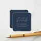 Teilen Sie Ihre wichtigen Hochzeitsinformationen mit Leichtigkeit mit dieser modernen, blau-marinebasierten Detailkarte mit einem scannbaren QR-Code. Dieses elegante quadratische Insert eignet sich ideal für Unterkünfte, Anleitungen oder zusätzliche Veranstaltungsdetails. Es behalte Ihr Schreibtisch stilvoll und leitet Sie online zu den aktuellsten Informationen. Der tiefgründige Marinehintergrund und der gepflegte Skript-Schriftart machen ihn zu einer zeitlosen Wahl sowohl für feierliche als auch für moderne Hochzeiten. Personalisieren Sie Ihren QR Code und Text, um Ihren Hochzeitstag perfekt zu erfüllen.