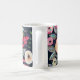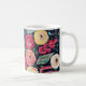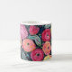 Unsere Tasse bietet Blume in Rot-, Gelb- und Rosa-Farbtönen auf schwarzem Hintergrund.