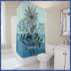 Moderne Blume über traumhaft blaues Hintergrund Duschvorhang