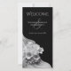 Ein detaillierter Zeitrahmen sorgt dafür, dass die Gäste sich von der seelenvollen Zeremonie bis zur lebendigen Tanzfläche nicht entgehen lassen. Machen Sie Ihre Hochzeitsfeier unvergesslich mit diesen Hochzeitsfeierprogrammen. Das moderne Schwarz-Weiß-Design mit weißen Blume besticht durch Stil und Romantik. Machen Sie Ihre Hochzeit von Anfang bis Ende unvergesslich. Sehen Sie sich unsere Kollektion für eine Hochzeit!
