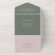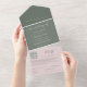 Le moderne Blush Rose & Moss Green QR Code Tout En Un Invitation. Prêt à personnaliser