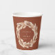 Moderne böhmische Naturpampas Gras Hochzeitstag Party Tassen. Atemberaubender, eleganter Drehtext und auf Trend botanisches Blattwerk. Auf dem Trend rostbedeckte Terracotta-Backerfarbe Orange.