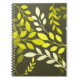 Notebook mit einem Cover von Blätter in den Farbtönen Grün, Gelb, Chartreuse. Design auch in aquamarinen und lila Farbtönen erhältlich. Koordination der Produkte in unserem Geschäft. Copyright 2021, K. McIver. Alle Rechte vorbehalten.