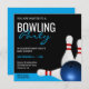 Die coole Babydusche mit Buttonen und Bowlingball mit moderner Typografie auf schwarzem Hintergrund lädt zum Verweilen ein. Fügen Sie einfach Ihre Veranstaltungsdetails zu dieser einfach zu bedienenden Vorlage hinzu, um sie zu einer einmaligen Einladung zu machen.