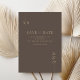Mit dieser bearbeitbaren Hochzeitsvorlage können Sie Ihre Daten einfach personalisieren. Das minimale elegante Typografie-Design in Brauntönen.