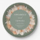Moderne braune Pampasgras Mr. & Mrs. Hochzeitstag Gastgeschenk Dekor Papierteller. Schöne handgedruckte Aquarellfarben mit floralen Aquarellen und moderner Schriftzeichen. Modernes Design im Trend.