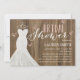 Das Bridal Shower Invitation besticht durch ein modernes Hochzeitskleid mit modernem Design auf einem rustikalen Holzboden. Wählen Sie eine Diecut-Form oder ein texturiertes Papier für eine luxuriöse Touch und ehren Sie die Braut zu sein mit dieser atemberaubenden Einladung.