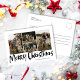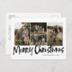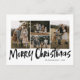 Die moderne Lettering Five Foto Merry Christmas Holiday Postcard verfügt über vier Fotos auf der Vorderseite und Platz für Ihre längere Nachricht auf der Rückseite.