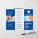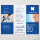 Ein einfaches, individuelles 3-Foto-Logo-Businesstrifold-Broschüre-Template in modernem minimalistischem Stil auf blauem, weißem Hintergrund.