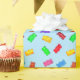 Moderne, bunte Süßbären auf blau Geschenkpapier