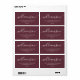 Mit diesen modernen burgundischen Rücksendeadressen-Aufklebern mit eleganter Schriftzeichen können Sie Ihre E-Mails aufwerten. Der weinrote Hintergrund mit knusprigen weißen Texten verleiht Hochzeitseinladungen, Urlaubskarten oder dem alltäglichen Schriftverkehr eine raffinierte Touch. Diese Labels sind vollständig mit Ihrem Familiennamen und Ihrer Adresse anpassbar und verbinden klassischen Stil mit praktischer Funktion.