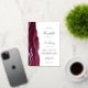 Der links Rand dieser eleganten, modernen Hochzeitseinladung zeichnet sich durch eine bordeauxrote Aquarellgrenze aus, die mit Imitaten aus silberem Glitzer bestickt ist. Der anpassbare Text kombiniert Handschrift, Copperplate und kursiv Schriftart in realer Silberfolie auf weißem Hintergrund. Auf der Rückseite ist ein passendes bordeauxfarbenes und silberfarbenes Design zu sehen.