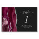 Moderne Burgundy Silver Agate Dark Wedding Tischnummer