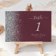 Moderne Burgundy Silver Glitzer Edge Wedding Tischnummer