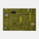 Dieses Türmchen hat ein modernes Design von Rechtecken in Grün, Grau, Braun und Schwarz.