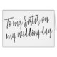 Une carte moderne, chic et joli style calligraphie "À ma soeur le jour de mon mariage", parfaite pour la donner le jour de votre mariage.