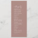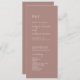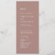 Ce programme de mariage minimaliste chic rose cannelle à plat est parfait pour un mariage simple. Le design boho romantique présente une typographie bohème rustique unique et élégante, dans une couleur mauve rose poussiéreuse et feutrée. Inclure le nom de la mariée et du marié, la date et le lieu du mariage, le message de remerciement, l'ordre de service, la fête de la mariée et un mémorial optionnel "en mémoire d'amour".