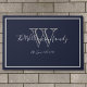 Moderne Chic Monogram Script Name Hochzeit Willkommenstor. Personalisierte, weiße, graue Monogramm mit Braut- und Bräutigam-Nachname und Datum auf marineblau Hintergrund. Ein einzigartiges cooles Geschenk für Neuvermählte. Lieblich für ihr neues Leben zusammen. Klicken Sie auf diese Vorlage, um sie schnell und einfach anzupassen. Weltweit schnell verschifft. Moderne Chic Monogram Script Name Hochzeit Willkommenstor. Erstellt durch den Künstler RjFxx *Alle Rechte vorbehalten. #WelcomeDoormat #Newlyweds #ZazzleMade