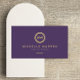 Ihre Initialen sind Set in einem modernen Doppelkronenlogo. Der goldene Text und der lila Hintergrund verleihen dieser Karte ein elegantes und echtes Aussehen. © 1201AM CREATIVE
