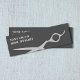 Mini Visitenkartenvorlage mit grauem Hintergrund und Silber-Schere-Symbol. Modernes, sauberes Design. Ideal für Friseur, Friseur oder Friseur.