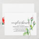 Elegante und moderne Aquarellfarben Blumen handgeschriebene Themenpaare duschen Einladung in Weiß mit rote Rosen und Knospen, grüne Blätter mit Platz auf der Rückseite für weitere Details. Wenden Sie sich an den Designer, um passende Party-Lieferungen zu erhalten. Sie können dieses Design auf eine magnetische Einladung oder andere Größe, Stil übertragen, wie gewünscht.