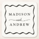 Fügen Sie Ihrer Hochzeitsempfehlung, dem Probe Dinner, der Verlobungsfeier oder dem Polterabend eine stilvolle Touch mit diesen modernen Creme- und Black Wavy-Frame-Untersetzer hinzu. Die Retro-Hochzeitsnacht-Untersetzer zeigen die Namen des Ehepaares in fett-schwarzer Schrift, umgeben von einem schwarzen, wellenförmigen Rahmen, der mit einem hellen cremefarbenen Hintergrund kontrastiert. Die trendigen Hochzeitsstipps wurden entworfen, um sich mit unserer Hochzeitskollektion "Modern Wavy Frame" abzustimmen.