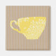 Das charmante moderne Design besticht durch hellbraunen gestreiften Hintergrund mit einer sonnigen gelben Kaffeetasse in der Mitte.