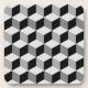 Modernes geometrisches Raster aus Diamantformen, in 3-D-Boxen angeordnet - Grautöne, von leichter Silber bis Grafit, und schwarze Untersetzer
