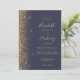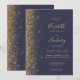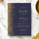 Die links Kulisse dieser modernen Hochzeitseinladung besticht durch ein goldenes Imitat-Glitzer-Design. Der individuell anpassbare Text kombiniert blassgoldene Handschrift, Copperplate und kursiv Schriftart auf dunkelblauem Hintergrund. Auf der Rückseite ist ein passendes dunkelblau-goldenes Glitzer-Design.
