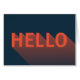 Mit dieser unterhaltsamen dunkelblauen Karte mit einem modernen abstrakten Design eines orangen "Hello" mit einem langen Schattengradienten senden Sie Familie und Freunden ein Hallo. *Bitte beachten Sie, dass das Zazzle-Wasserzeichen, das in der Zoomvorschau angezeigt wird, NICHT auf dem gedruckten Endprodukt erscheint. © Rosewood and Citrus