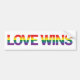 Modernes, farbenfrohes, lebendiges typografisches Design des Sprichworts "Liebe gewinnt" in Regenbogenfarben. Einfache, kühne, lebendige und urbane grafische Kunst.