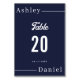 Diese elegante marineblaue Hochzeitsfeier ist ideal für eine moderne Hochzeit und das schlichte Design mit eleganter weißer Kalligraphie auf marinebasischem Hintergrund.