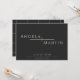 Diese modernen, minimalistischen Einladungen zur Hochzeit von 7" x 5" bieten Platzhalter für die Ehepaare mit Vornamen, Datum und Uhrzeit, Position auf schwarzem Hintergrund mit Elfenbeintext. Die Rückseite ist ein schwarzer Hintergrund mit einem feinen Linienmuster.