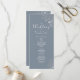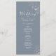 Élevez votre mariage avec notre programme de mariage bleu poussiéreux moderne et intemporel. Avec son design botanique chic et ses accents de dentelle fleurie dorée argentée vintage, il dégage élégance et charme. Le script de calligraphie simple ajoute une touche de sophistication classique, ce qui en fait le complément parfait à votre journée spéciale.