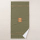 Serviette de bain monogrammed de luxe tendance, avec un carré de parties scintillant métallique en cuivre faux or et des lignes sur un arrière - plan élégant et élégant vert foune. + Personnalisez-le avec votre nom ou nom de famille et nom monographique initial.