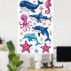 Moderne, elegante Aquarelltöne Meertiere 3 Poster
