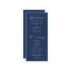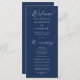 Dieses Hochzeitsprogramm zeichnet sich durch eine elegante weiße Kalligraphie auf einem reichen marinen Hintergrund aus und schafft ein modernes und raffiniertes Design, das den Ton für Ihre Zeremonie Set. Paare können das Programm mit Namen, Hochzeitstag und Zeremonie Details in fett weißer Schrift personalisieren, um eine klare und stilvolle Präsentation zu gewährleisten. Die Rückseite zeigt elegant die Namen Ihres Brautparty an und fügt diesem unverzichtbaren Hochzeitsdetails eine persönliche Touch hinzu. Dieses Hochzeitsprogramm ist perfekt für lässige und formelle Hochzeiten geeignet und verbindet Einfachheit und Eleganz. Es ist eine zeitlose Ergänzung zu jeder Feier, egal zu welcher Jahreszeit.