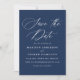 Teilen Sie Ihre spannenden Neuigkeiten mit unserer eleganten Hochzeit speichern Sie die Terminkarten. Mit "Save the Date" in anmutiger weißer Kalligraphie vor einem reichen marinen Hintergrund schafft dieses Design einen zeitlosen und raffinierten Look. Paare können die Karte mit ihren Namen, ihrem Hochzeitstag, ihrem Standort und ihrer Hochzeitswebsite personalisieren, die alle in fett weißer Schrift für einen schlichten und kohärenten Stil dargestellt sind. Dieses klassische Design ist einfach und auffallend, um den Ton für ein unvergessliches Fest zu setzen.