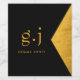Schwarze Goldweinetiketten für Zuhause oder Unternehmen, mit einem schlichten, modernen, goldfarbenen, minimalistischen Monogramm auf schwarz, mit einfachen Serif-Typografie-Initialen und einer Imitat-Folie mit goldfarbenem Dreieck. Ein Satzzeichen (Periode) teilt den ersten und letzten ersten als ein einfaches Gestaltungselement auf, das diesen typografischen Stil als modern und sauber definiert. Ihr Name im Großserifentyp. Einfach, sauber und modern.