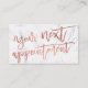 Moderne elegante Rose Gold Drehbuch Typografie weißen Marmor mit Ihrem nächsten Termin in einer modernen und stilvollen Skript-Kalligrafie geschrieben. Ideal für Schönheitssalon, Haarstylisten und Make-up-Künstler.
