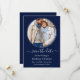 Moderne elegante Round-Foto-Frame-Karte Save the Date Verleihkarte für Foto Hochzeit-Verlobung - Blau