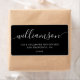 Mit diesen modernen Versandetiketten in schwarzer Rücksendeadresse machen Sie einen kühlen und stilvollen Eindruck. Dieses Design mit einem weißen Kalligraphieskript für den Familiennamen und klassischen Serif-Schriftart für die Adresse eignet sich hervorragend für Urlaubsmailings, Hochzeitseinladungen, Business Packages oder persönliche Korrespondenz. Die minimalistische Ästhetik gepaart mit einem reichen Schwarz macht es zu einer vielseitigen und raffinierten Wahl.